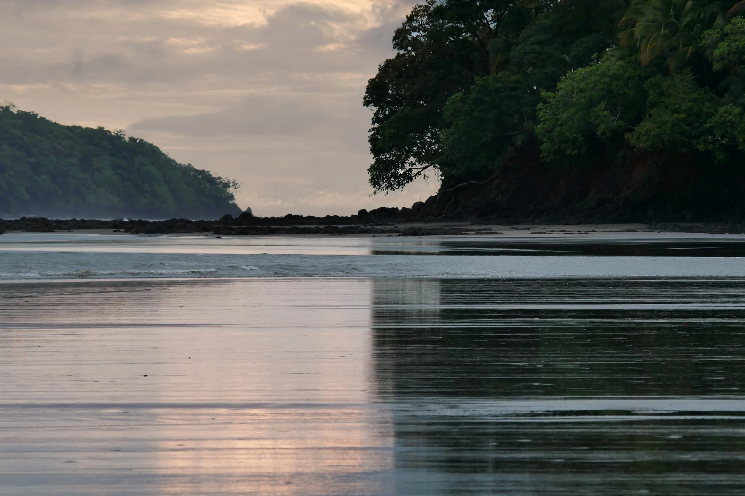 Tranquil Ocean Cove With Misty Mountains and Forest.jpg